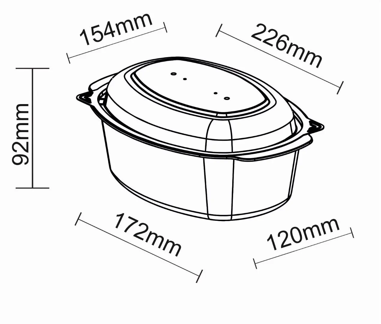 Durable yet lightweight, the container is designed to resist cracking or deformation during transport. Its oval structure allows neat portioning and efficient stacking, optimising space in kitchens, delivery bags, and shipping cartons.