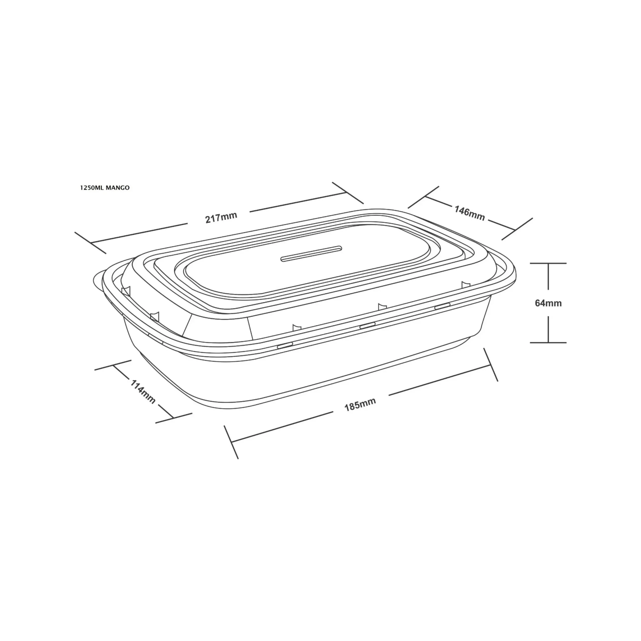 1250 ml Rectangular oval – Takeaway Container