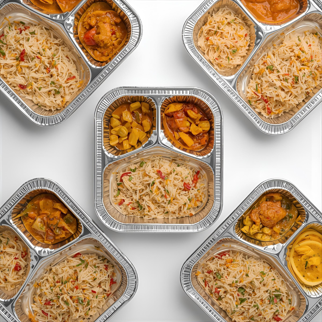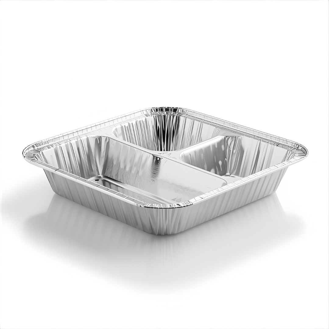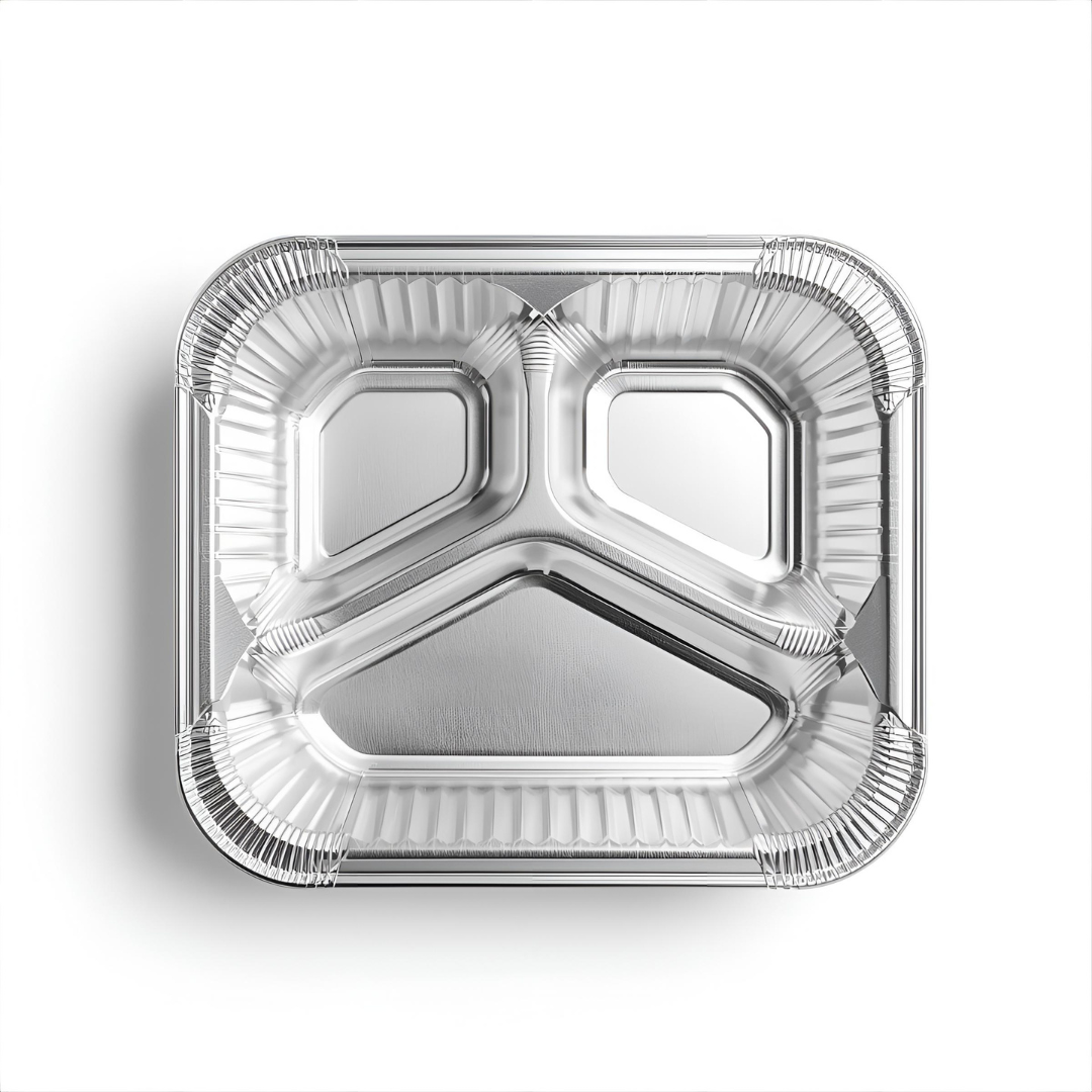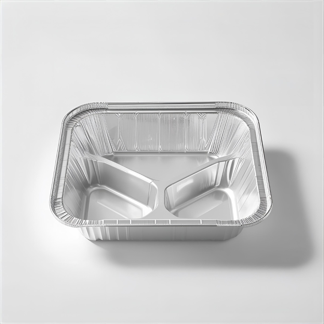 High-quality 3 compartment Aluminum Containers designed for portion control and meal separation. These food-grade Foil Containers are durable, heat-resistant, and ideal for catering services, airlines, and institutional food supply.