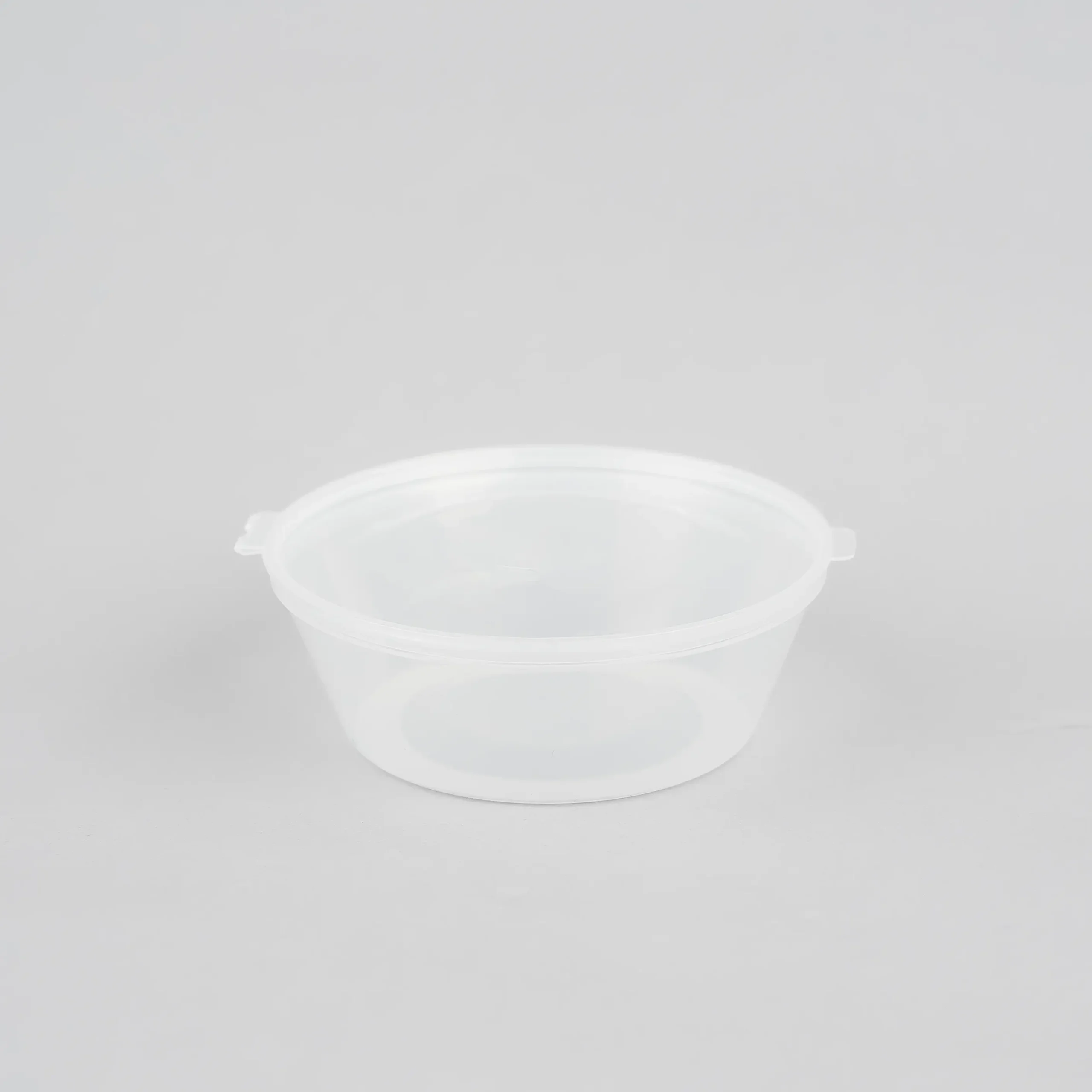 Durable and hygienic 6 oz round container with integrated hinged lid takeaway container — ideal for sauces, chutneys, dips, desserts, and condiments. Perfect for restaurants, catering, and food delivery operations.