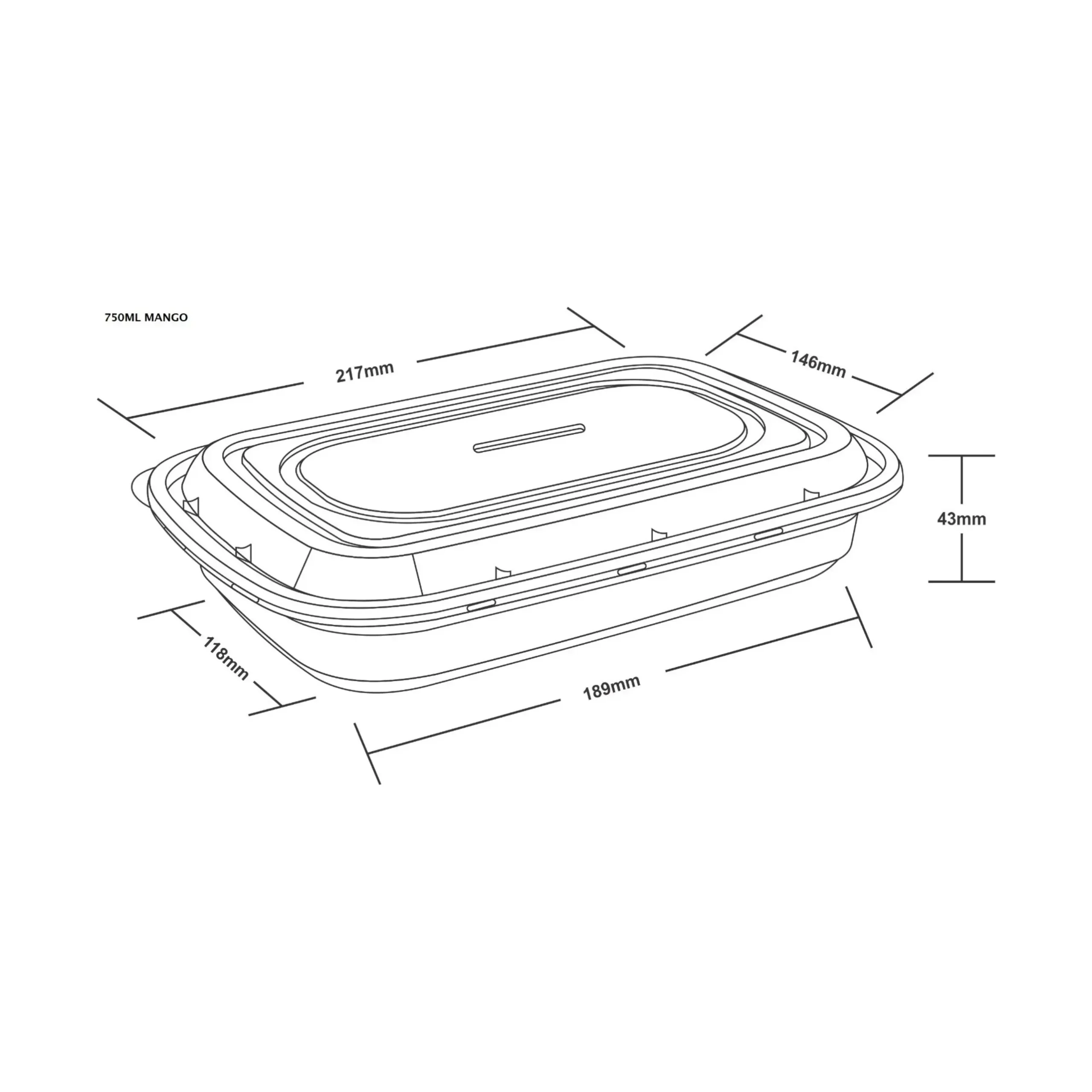The 750 ml Rectangular oval container (MANGO series) is engineered for restaurants, cloud kitchens, catering suppliers and international exporters.